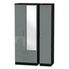 Knightsbridge Tall Triple 2 Drawer Mirrored Wardrobe in Grey Gloss & Black
