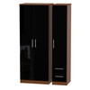 Knightsbridge Tall Triple Plain + Drawer Wardrobe in Black Gloss & Noche Walnut