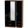 Knightsbridge Triple 2 Drawer Mirror + Drawer Wardrobe in Black Gloss & Noche Walnut