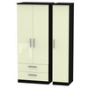 Knightsbridge Triple 2 Drawer Wardrobe in Cream Gloss & Black
