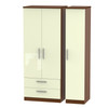 Knightsbridge Triple 2 Drawer Wardrobe in Cream Gloss & Noche Walnut