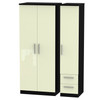 Knightsbridge Triple Plain + Drawer Wardrobe in Cream Gloss & Black